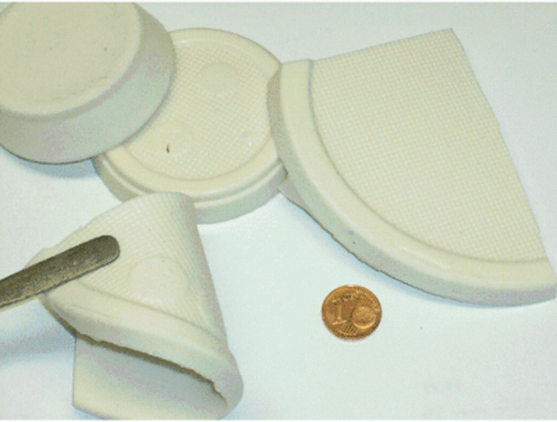 The task was to comminute the silicone rubber sample in the photo. In fact down to a particle size < 1 mm with the option - depending on the use of the comminuted material - even down to 0.1 mm. The material is very elastic. Therefore the first assumption was that a comminution is only possible with cutting mills and cooling with dry ice is mandatory.